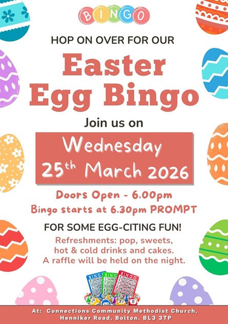 At Connection Community Methodist Church, Henniker Road, Bolton. BL3 3TP